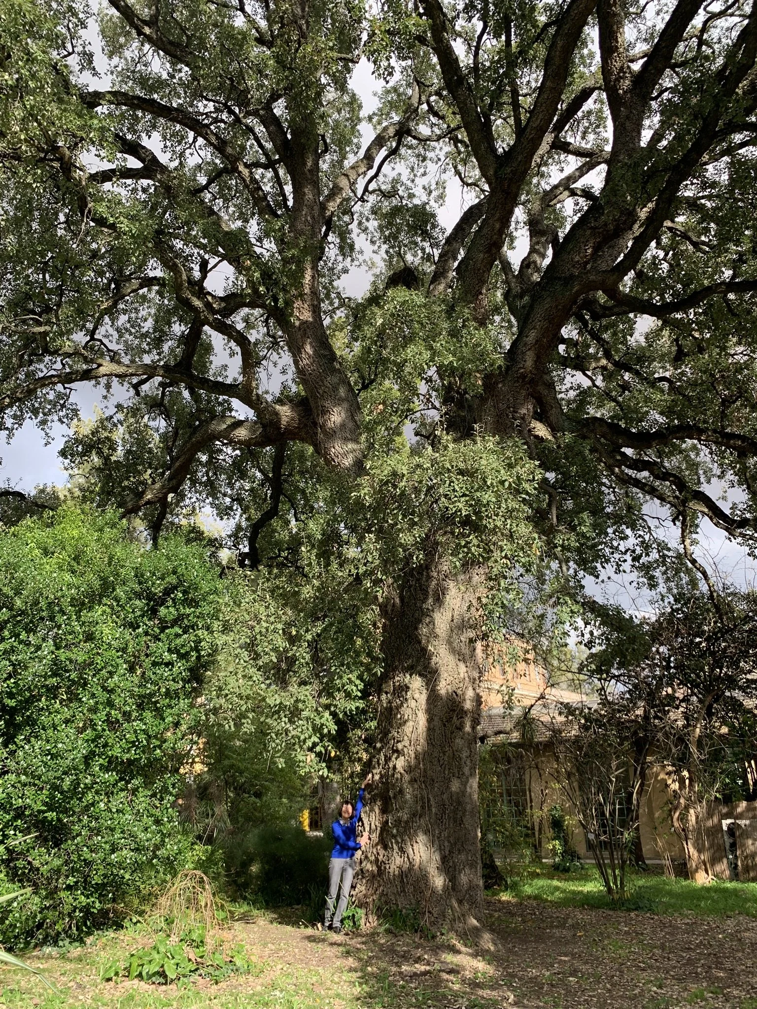 Il vecchio amico li aspetta, felice di poter ascoltare nuovi aneddoti sul loro soggiorno al museo. Anch’egli ha sempre cose da narrare. Il suo modo di raccontare non è affatto banale: ha conservato intatti la spigliatezza e il senso della battuta dei suoi verdi anni. Quando i sei compagni riprendono finalmente il cammino del ritorno, percorrendo la strada a ritroso, non sono guidati dalla voglia di rincasare. Invece di dirigersi verso Piazza di sant’Egidio dove è collocato il museo, girano a sinistra per imboccare via della Scala e proseguono per via della Lungara. Prima dell’Accademia dei Lincei svoltano per il lato mancino: sono in via Corsini. In fondo, si apre l’ingresso dell’Orto botanico di Roma. È proprio lì, all’Orto botanico, che la buffa compagnia va a trascorrere il lunedì pomeriggio. Già dalla prima visita, hanno fatto conoscenza con la maggiorente del parco: la Sughera monumentale.