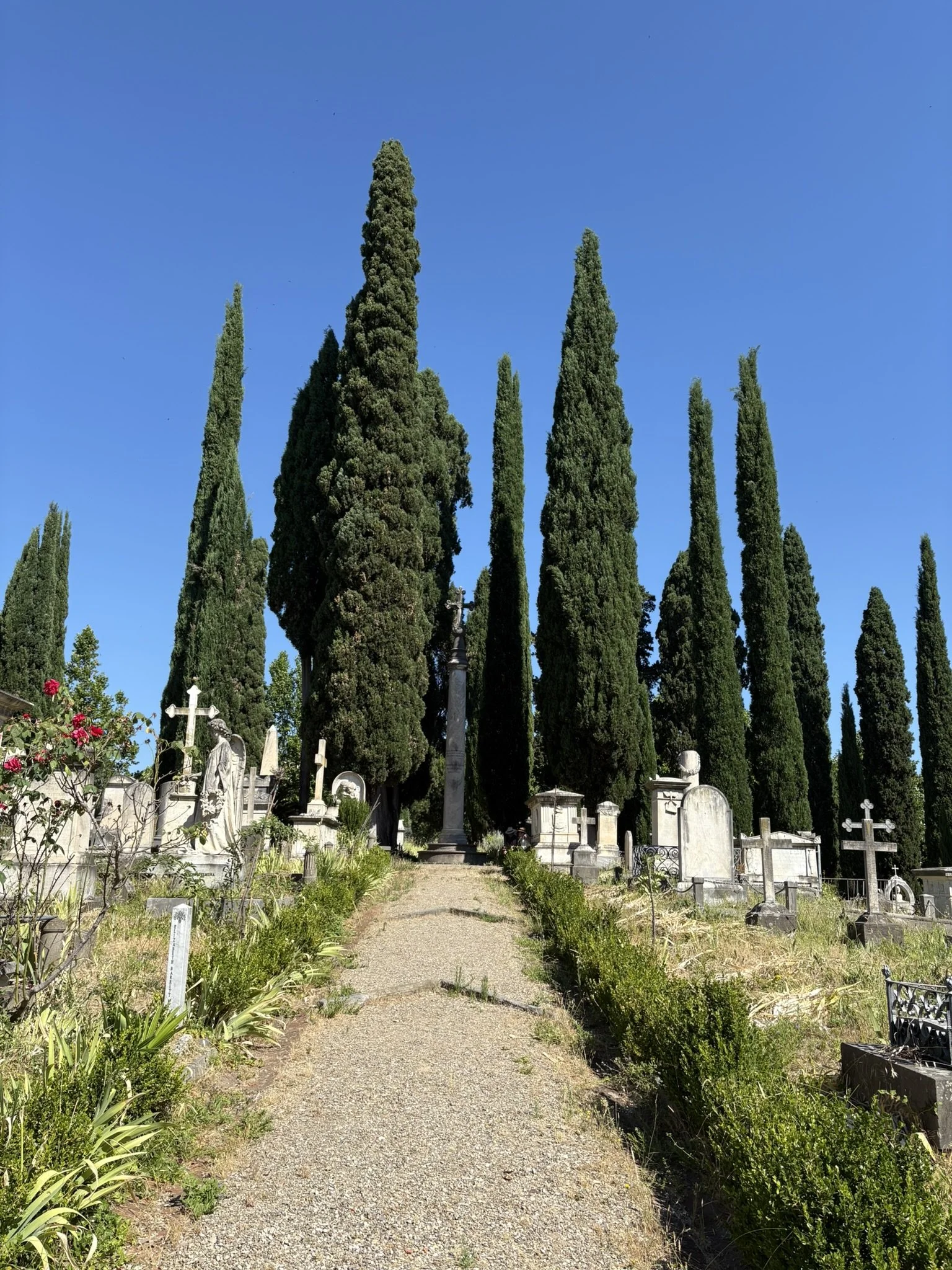 In eco alla visione luminosa dei cipressi proposta da Munch, sentiamo la voce della scrittrice inglese Vernon Lee (1856 – 1935), pseudonimo di Violet Paget. Una frase custodita nel suo libro The Spirit of Rome (1906) la dice lunga sull’effetto che produssero su di lei gli alberi pizzuti del Cimitero acattolico dove riposano i poeti Keats e Shelley: “Non sembrano tanto unire le persone nella terribile comunanza della morte, quanto piuttosto nella vita eterna dei secoli.”