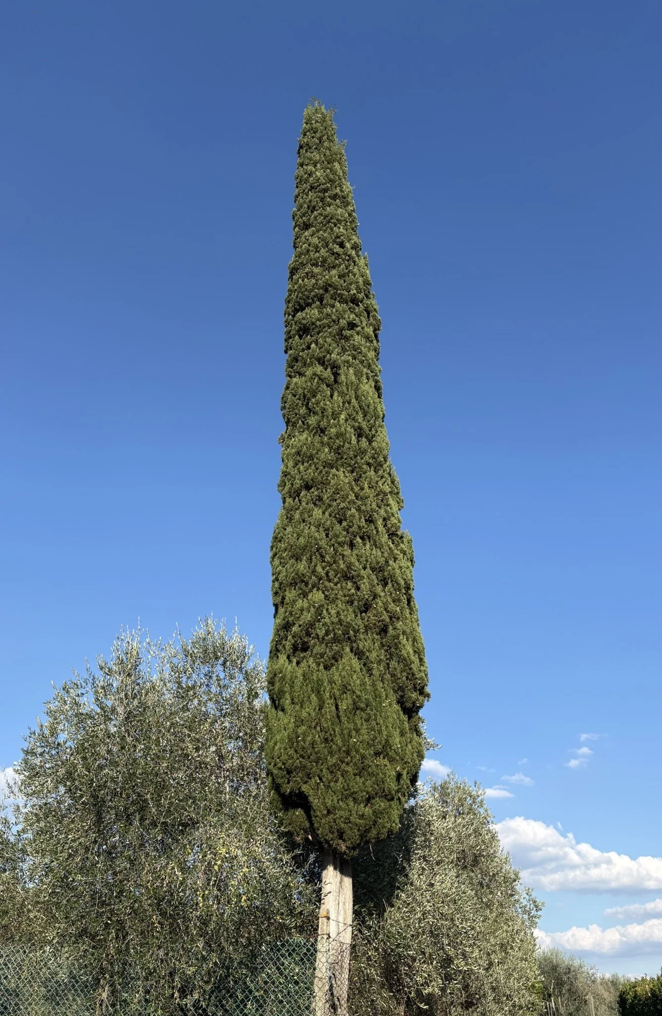 Condivido la riflessione dell’illustre botanico udinese Giacomini Valerio (1914 – 1981) al riguardo, anche se non cita espressamente la Toscana: “…ovunque si attua questa armoniosa associazione colturale dell’olivo col cipresso – nelle ville vetuste dei colli romani, sulle alture umbre, o intorno al Lago di Garda – si ripete una delle più armoniose combinazioni di forme e di colori che l’uomo abbia saputo realizzare nel nostro paesaggio urbanizzato mediterraneo”.